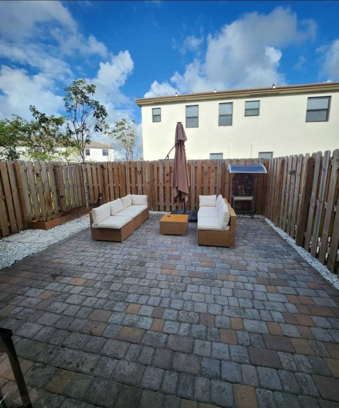 Outdoor Oasis: Step outside to a beautifully paved backyard an ideal space for outdoor dining, entertaining friends, or simply relaxing after a long day.